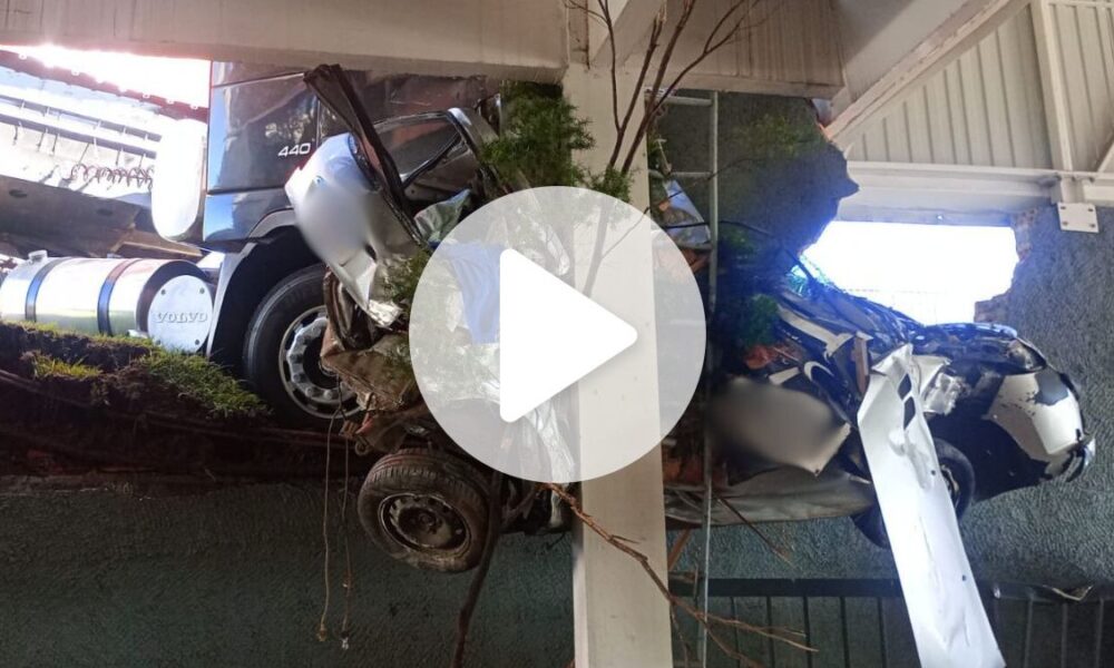 VÍDEO: Carreta sem freios com mãe e filha esmaga carro e atinge con…